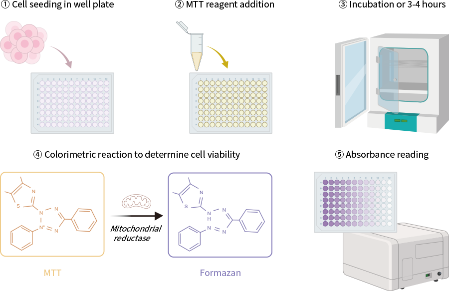 在特定溶劑存在的情況下,該產(chǎn)物被完全溶解,然后通過酶標(biāo)儀在特定波長(如570nm)條件下根據(jù)吸光度來反映細(xì)胞增殖/毒性情況。